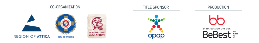 Co-organizers include the Region of Attica, the Municipality of Athens, and the Municipality of Marathon.
